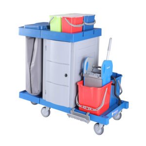 It is a multipurpose trolley which is used at dusting, waste collection, floor mopping and cleaning of surfaces areas.