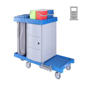 It is a multipurpose trolley which is used at dusting, waste collection, floor mopping and cleaning of surfaces areas.