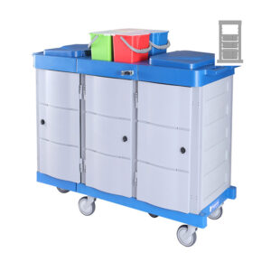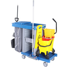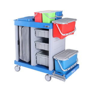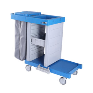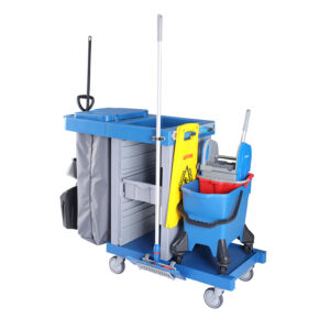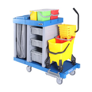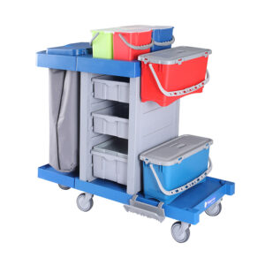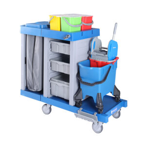 It is a multipurpose trolley which is used at dusting, waste collection, floor mopping and cleaning of surfaces areas.
