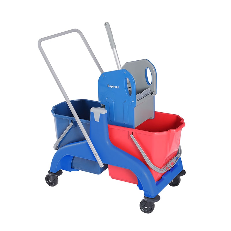 - Red and Blue 25L or 18L buckets which allow to separate the cleaning solution from rinse water for better cleaning results and hygiene, saving water, cleaning solution and labour time and consequently minimum effort of the operator.