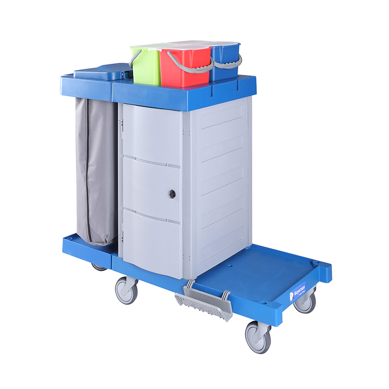 It is a multipurpose trolley which is used at dusting, waste collection, floor mopping and cleaning of surfaces areas.