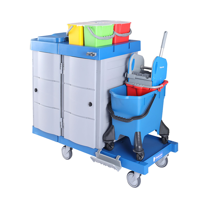 It is a multipurpose trolley which is used at dusting, waste collection, floor mopping and cleaning of surfaces areas.