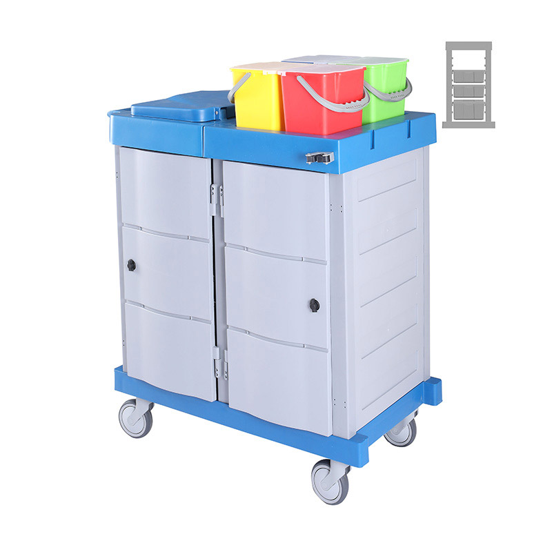 It is a multipurpose trolley which is used at dusting, waste collection, floor mopping and cleaning of surfaces areas.