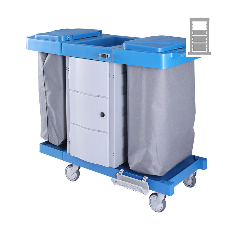It is a multipurpose trolley which is used at dusting, waste collection, floor mopping and cleaning of surfaces areas.