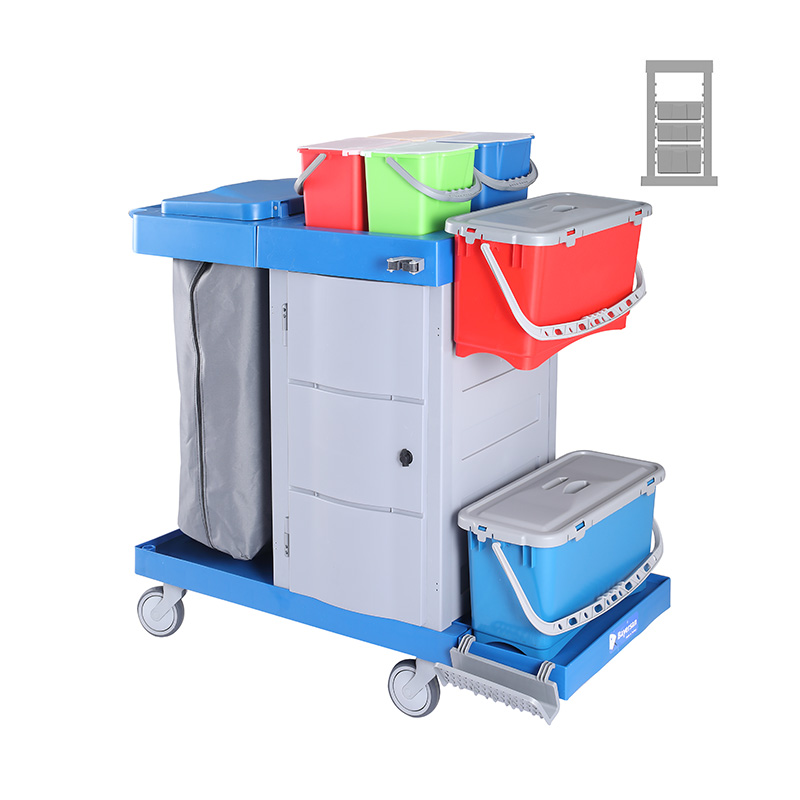 It is a multipurpose trolley which is used at dusting, waste collection, floor mopping and cleaning of surfaces areas.