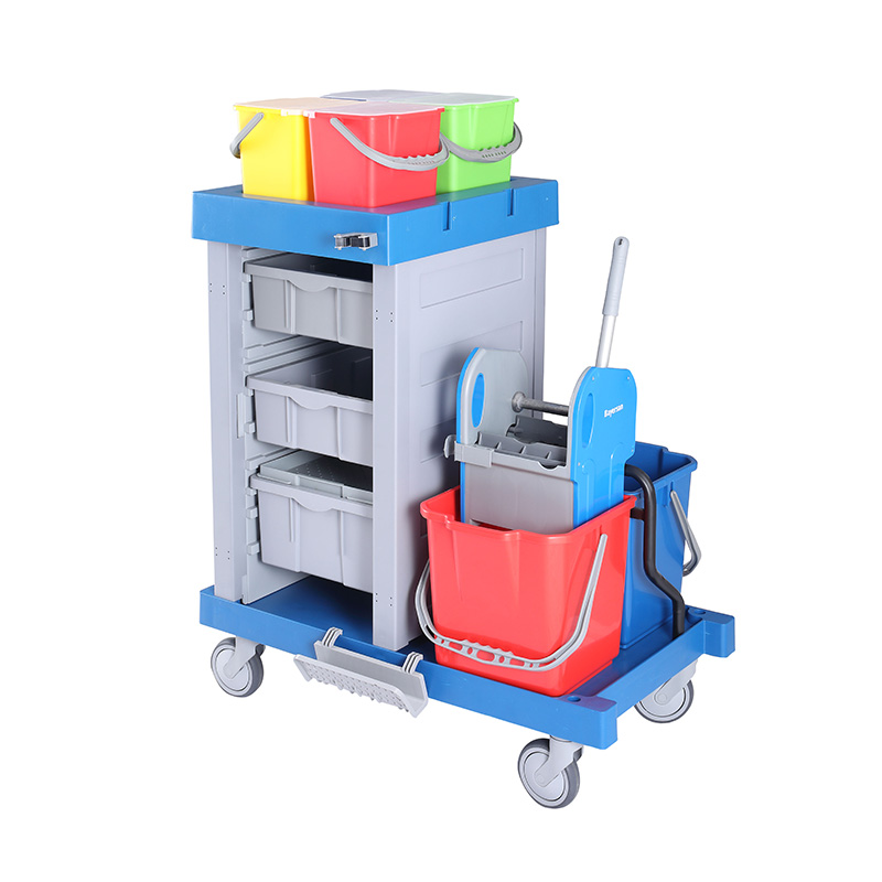 It is a multipurpose trolley which is used at dusting, waste collection, floor mopping and cleaning of surfaces areas.