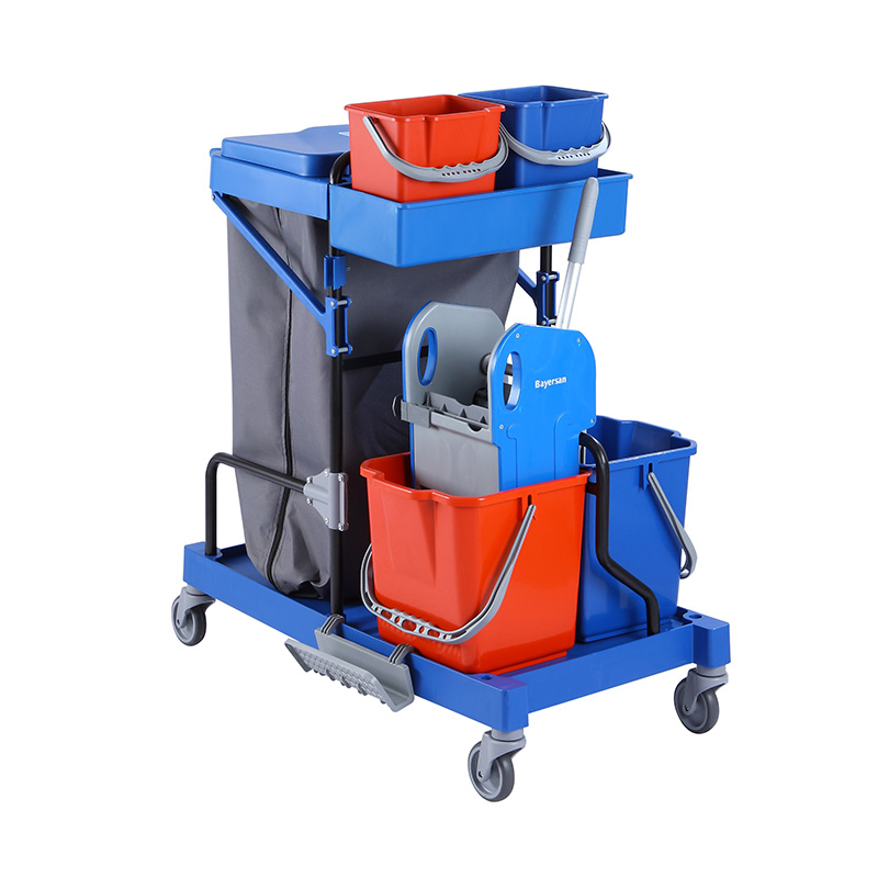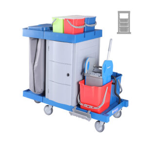 It is a multipurpose trolley which is used at dusting, waste collection, floor mopping and cleaning of surfaces areas.